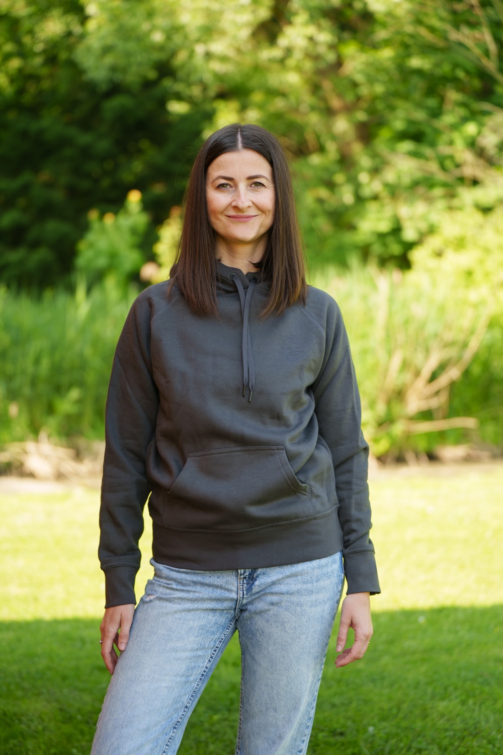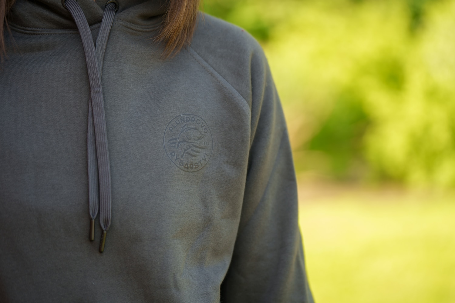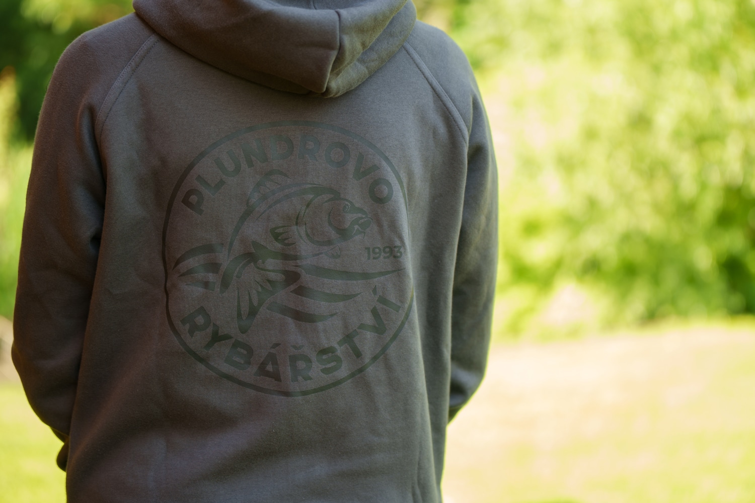 Mikina PR s kapucí a logem malým vpředu a velkým vzadu